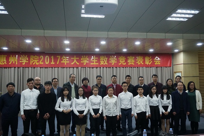 本网讯 2018年1月17日下午,惠州学院2017年大学生数学竞赛表彰大会在图书馆学术报告厅举行。教务处、学生处、数学与大数据学院等单位负责人,各二级学院主管教学副院长、竞赛指导教师、获奖学生及数学与大数据学院2017级学生代表参加了本次大会。