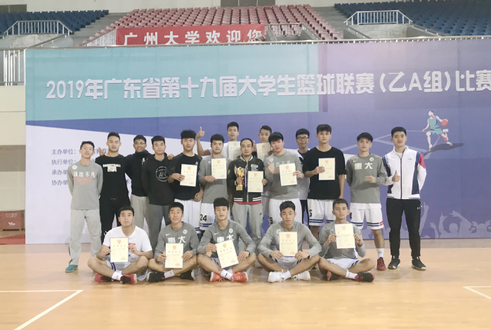 本网讯 11月24日至12月1日,由广东省教育厅主办、广东省学生体育艺术联合会联合承办的2019年广东省大学生篮球联赛在广州大学举行。经过激烈的角逐,我校学生男子篮球队最终获得男子乙A组第三名,学生女子篮球队获得女子乙A组第七名。体育学院黎伟军老师获得“优秀教练员”称号。