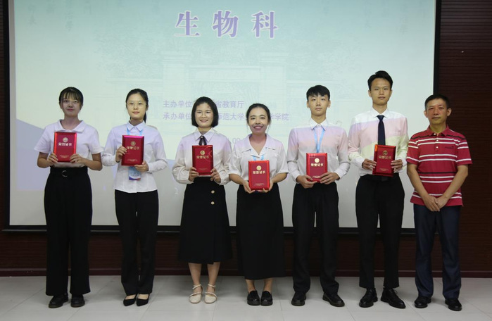 本网讯 2021年9月24-26日,第九届广东省本科高校师范生教学技能大赛(生物组)在华南师范大学举行。经过激烈角逐,我校2018级生物科学专业学生黄炜杰、陈祖濠获一等奖,张惠莹、王紫珊获二等奖,张琪、张燕萍获三等奖,创下生命科学学院参加该项赛事以来的最好成绩。