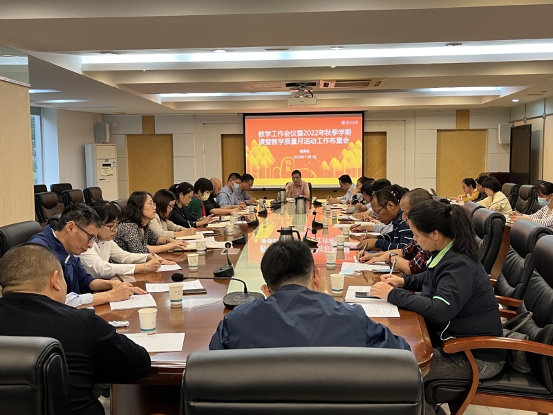 11月1日,学校在行政楼202会议室召开2022年秋季学期课堂教学质量月活动工作布置会。副校长郑文,教务处、教师发展中心、网络与信息中心负责人,各二级学院教学副院长及教务处相关人员参加会议。会议由教务处负责人主持。