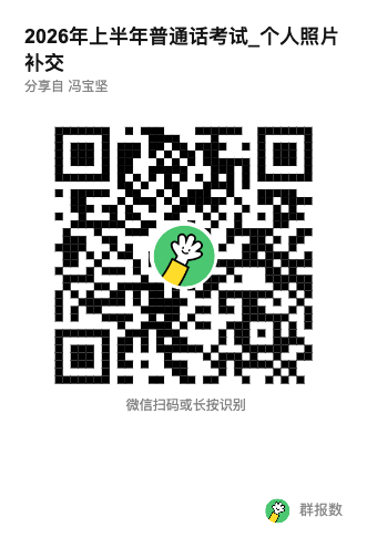 扫描下方二维码进入2026 年上半年普通话考试_个人照片提交(第二轮) 通道,准确填写学号、姓名、身份证号等信息,上传合格照片。提交成功≠审核通过,